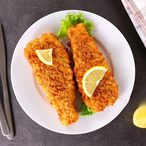 1. Dip fillet in egg then coat with blended Parmesan cheese & the homemade breadcrumbs.