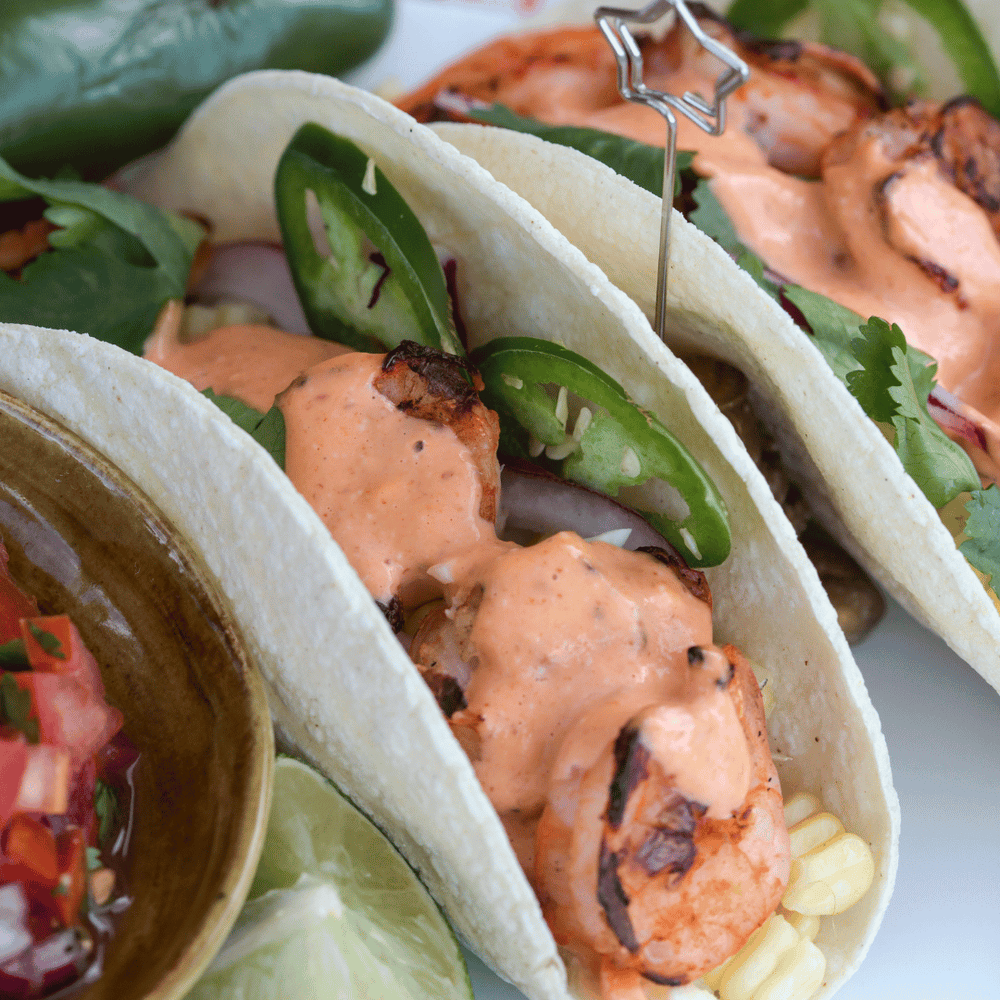 Two prawns walked into a tortilla. One said to the other, "This is going to be a shell of a taco!" Marinated in coconut green curry, served with avocado and cabbage - it's a fiesta in your mouth!