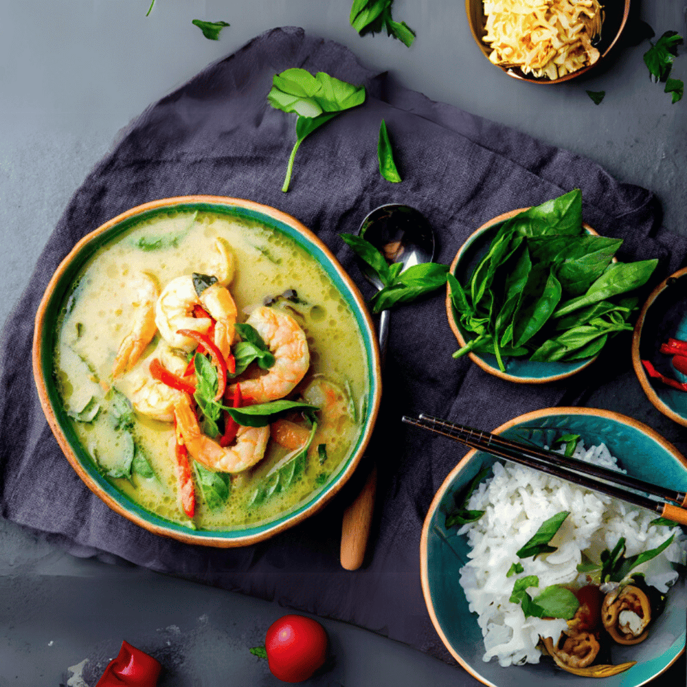 - 加入蝦,根據蝦的大小再煮5-10分鐘。與白飯一起上桌,並撒上一些切碎的香菜。